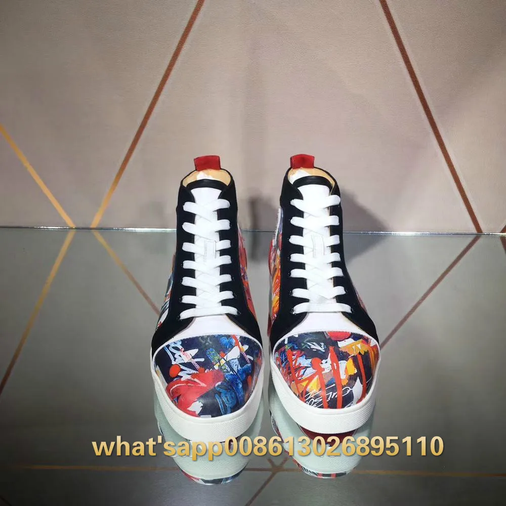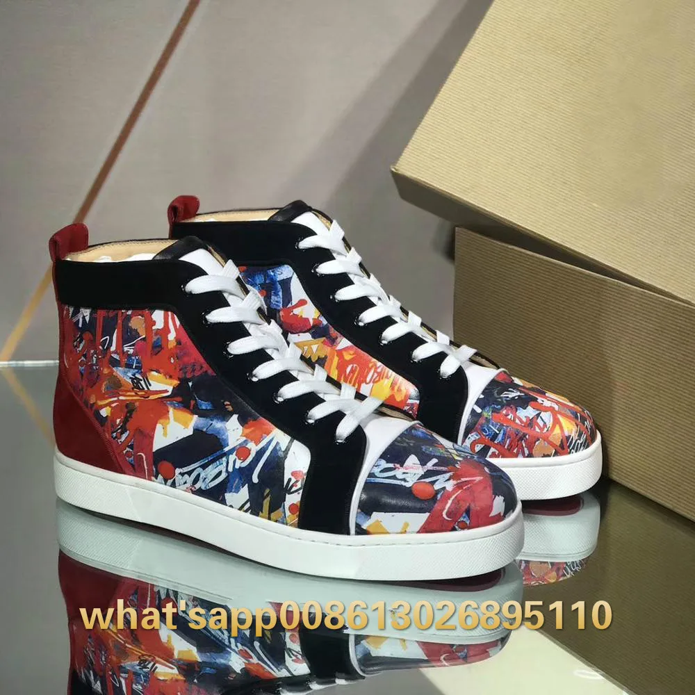 Best Red bottom High Top Colored Graffiti sneaker Lace up no Rivets Red bottoms Shoes leather Footwear c