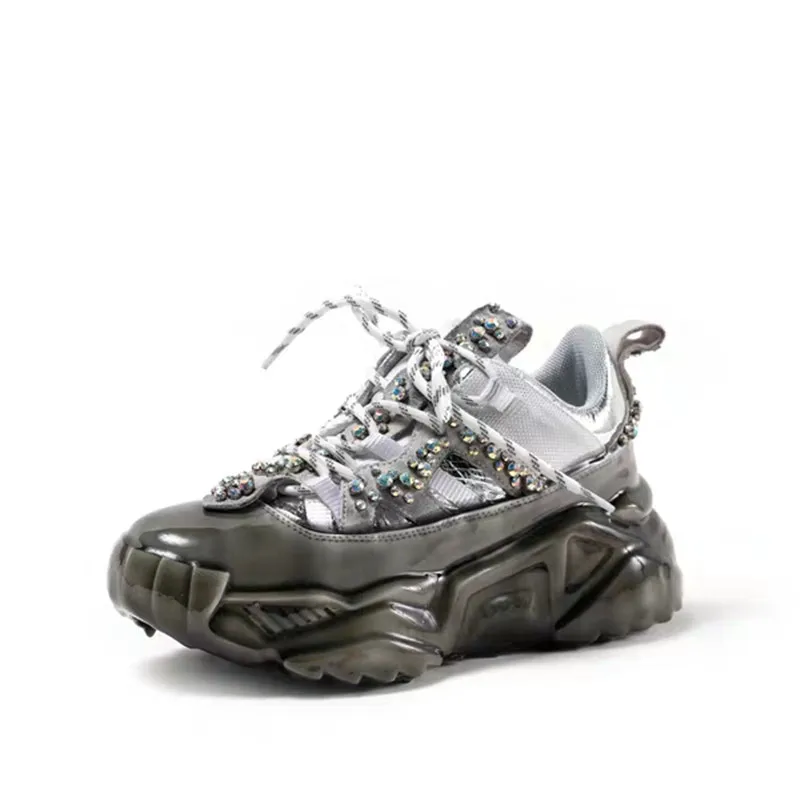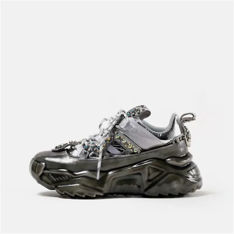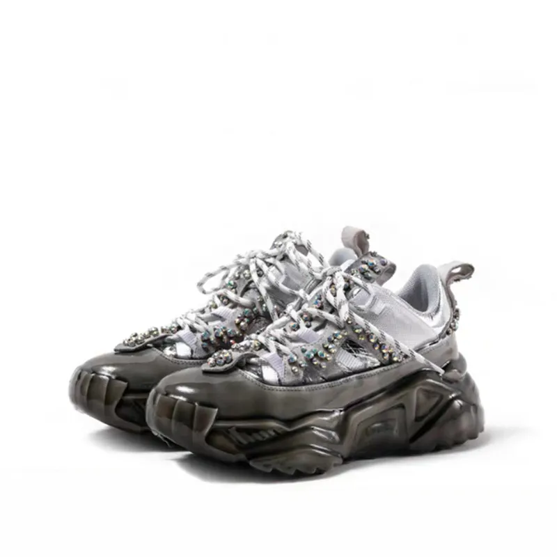 Women Dad Shoes 2019 Rhinestone Chunky Shoes Platform Thick Sole Increasing Shoes Ladies Sneakers P